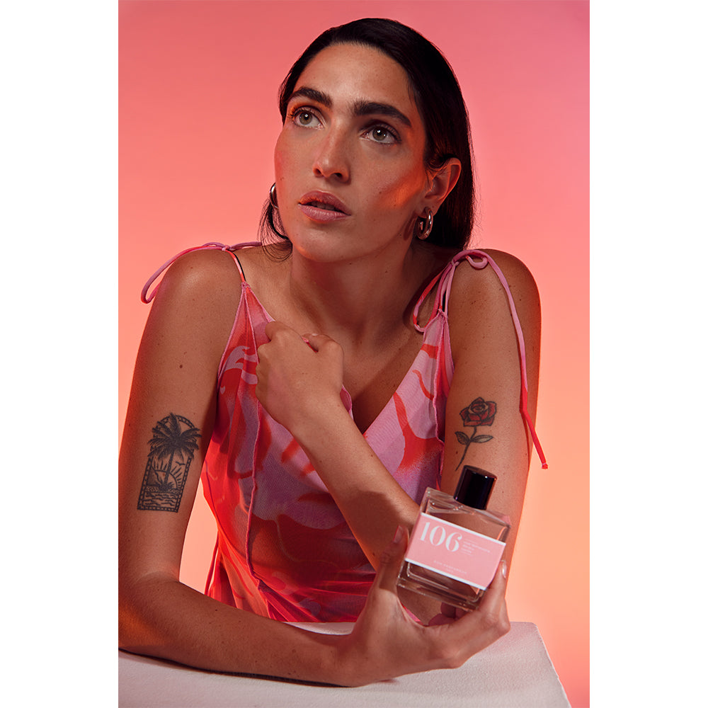 Von Anfang an berauschend und charmant, strahlen die Damaszener Rosenblütenblätter durch den gesamten Duft. Rosenblüten mit einem Hauch von Samt, ein moschusartiger Vanilleduft, verwoben mit einem Hauch von rosa Pfeffer. Rose, Davana und Vanille, ein betörendes Trio von Zutaten.