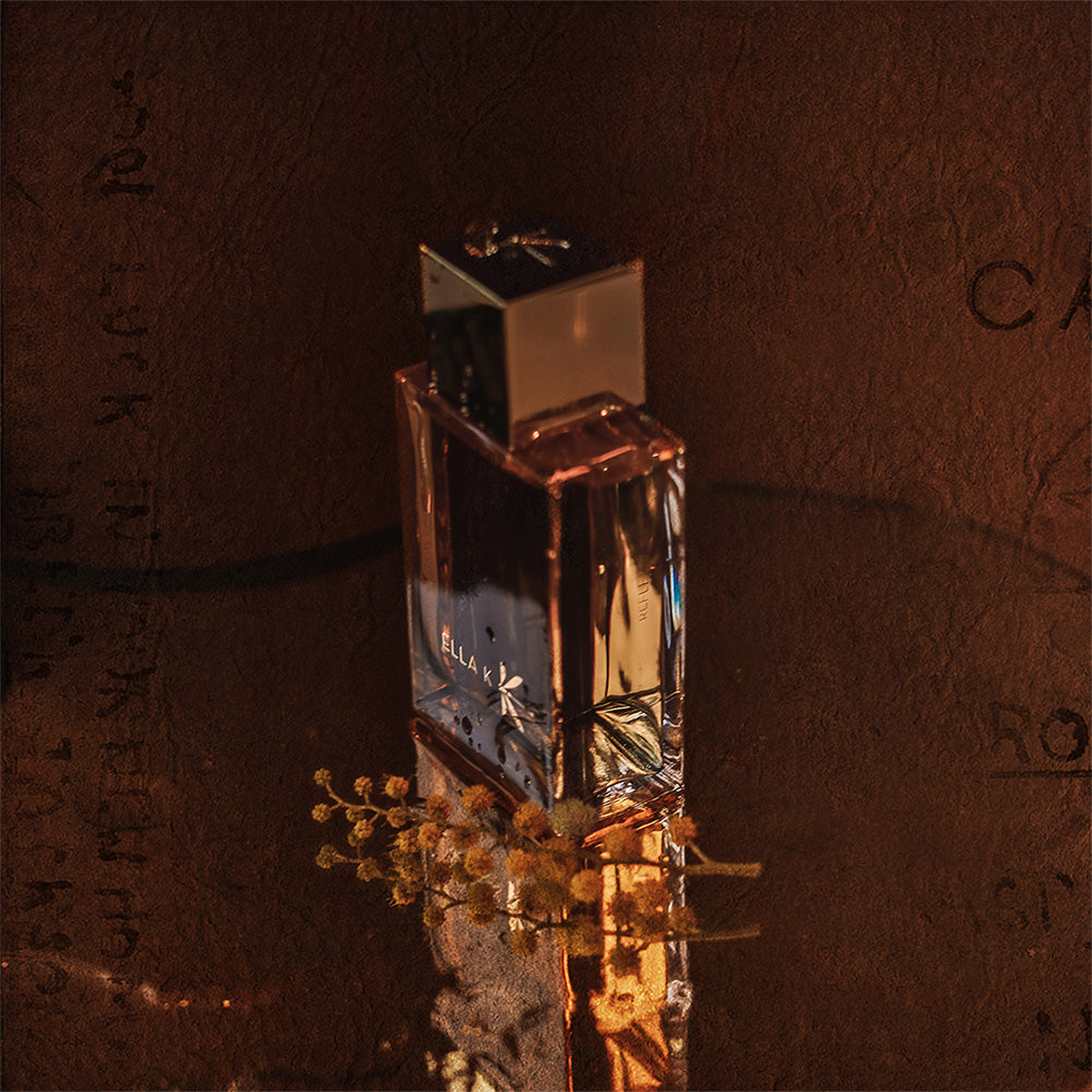 gepuderten Noten und die grünen Noten des Papyrus hinzu. Und um die Komposition abzuschließen, habe ich die holzigen Noten von Bergahorn und Mopan und fruchtigen Noten hinzugefügt. All dies verleiht diesem Parfum ein extrem sanftes und süchtig machendes Gefühl.