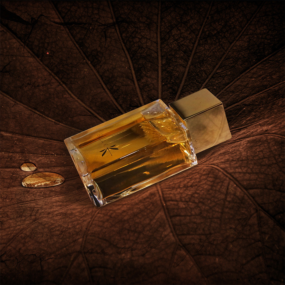 „Fasziniert von einem Gedicht über die Akazie und ihrem weichen, honigsüßen Geschmack, vermischte ich diesen mit dem interessanten Geruch des für Botswana typischen Hirtenbaums. Die sonnigen, gepuderten Noten aus der wolligen Kaper im Delta, die grünen Noten des Papyrus, der die Flussufer säum und die Verbindung mit der Tonkabohne; all dies verleiht diesem Parfum ein extrem sanftes und süchtig machendes Gefühl. Um die Komposition abzuschließen, fügte ich die holzigen Noten von Bergahorn und Mopan und die fruchtigen Noten der Marula hinzu.“