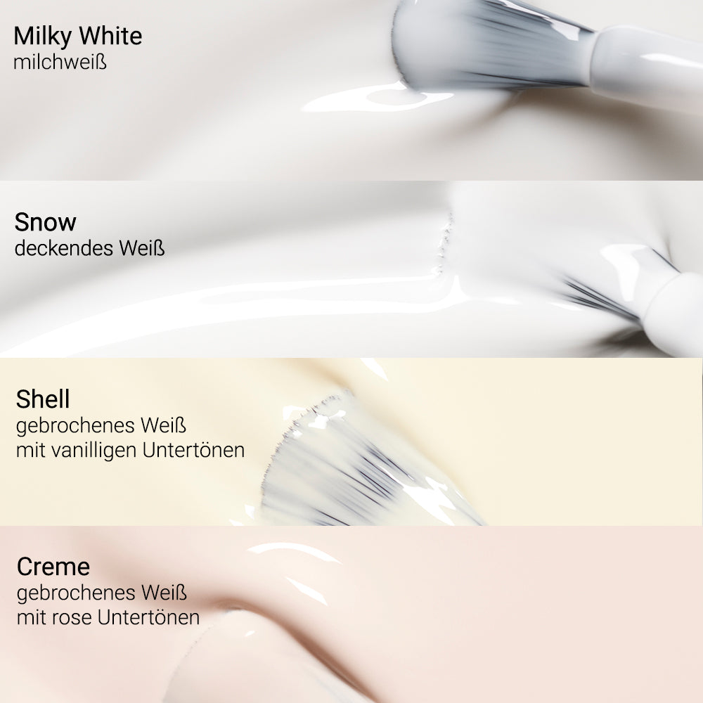 Im Spektrum der Weißtöne liegt dieser eher auf der cremigen Seite. Ein milchiger und schlichter Nagellack.