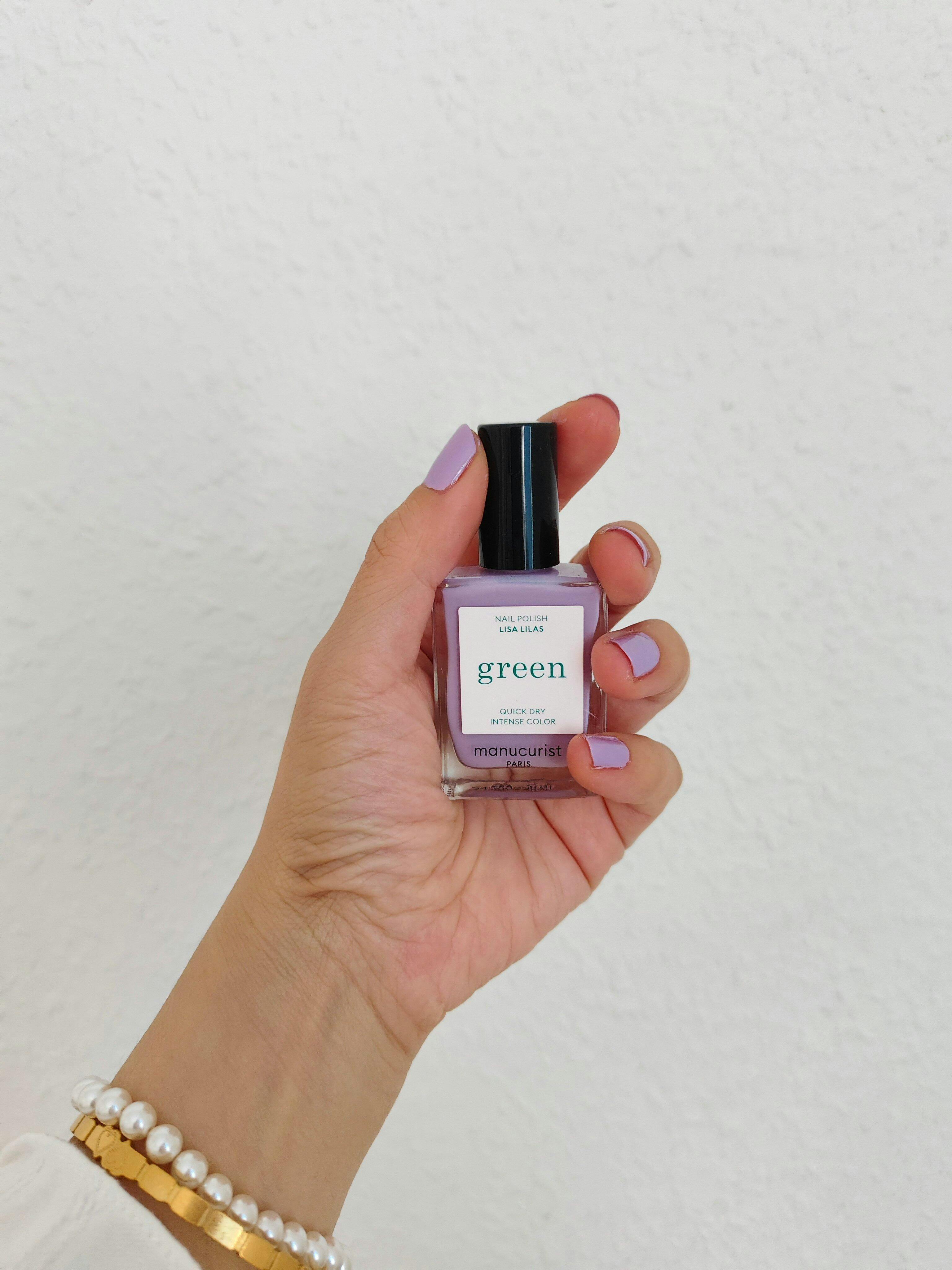 Dann 2 dünne Schichten der GREEN Lieblingsfarbe auftragen und trocknen lassen. Zum Schluss den Top Coat auftragen und trocknen lassen.