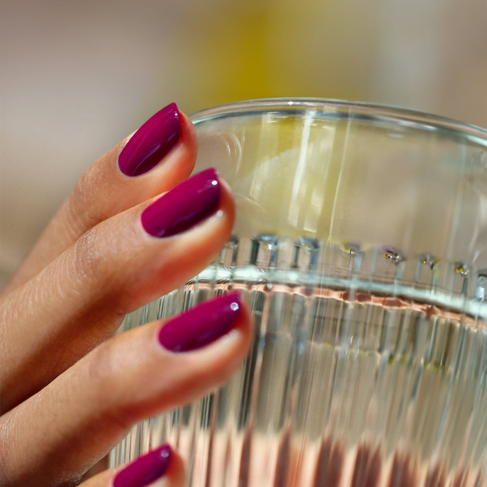 Trage nun deine Lieblingsfarbe in einer dünnen Schicht auf den Nagel auf und versiegel auch hier den vorderen Rand. Härte die Farbe mit der LED Lampe aus. Wiederhole den Schritt, sodass du zwei dünne Farbschichten aufträgst.