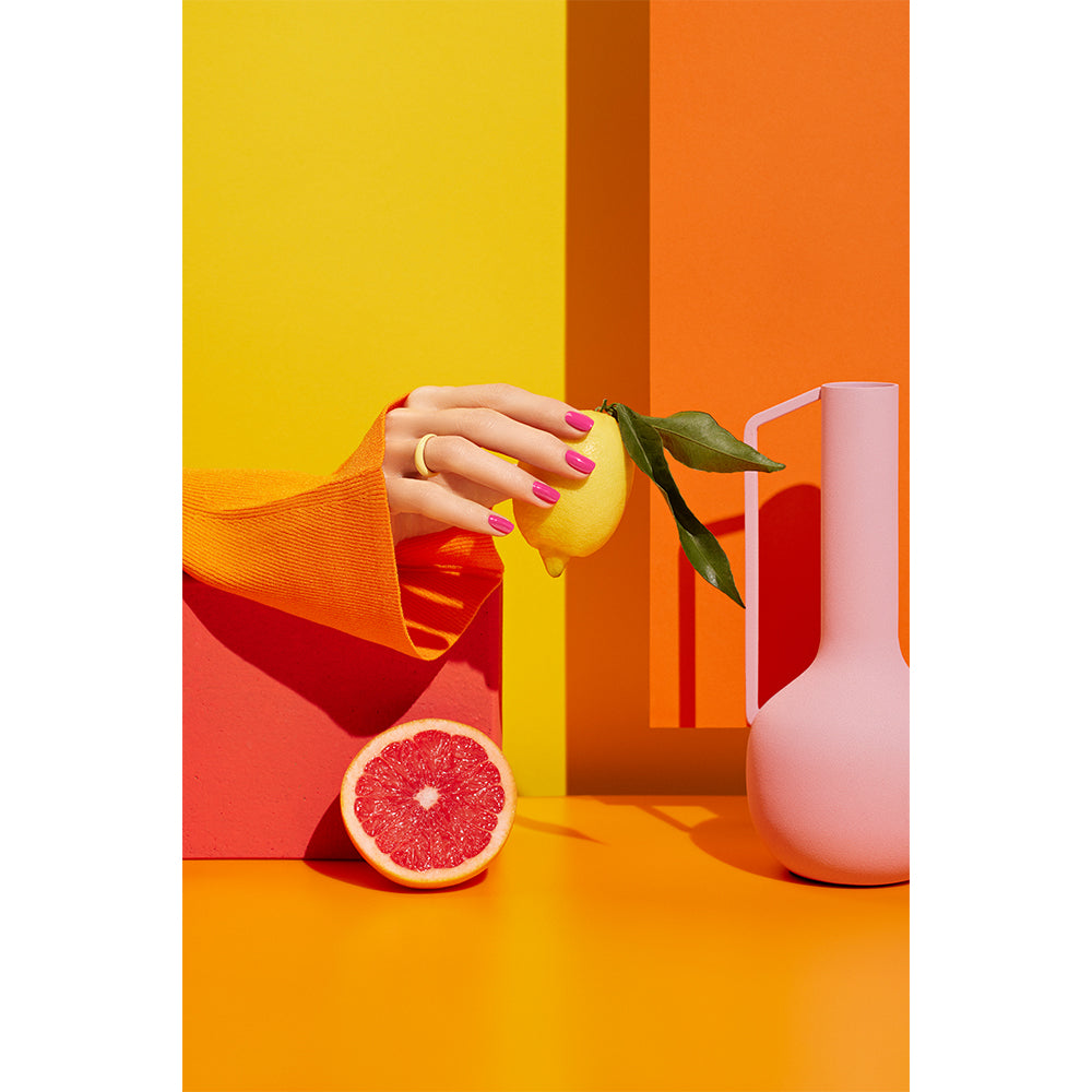 Ein künstlerisches, knalliges Pink, das die sonnigen Tage ankündigt, mit blauen Untertönen für einen stilvollen Touch.