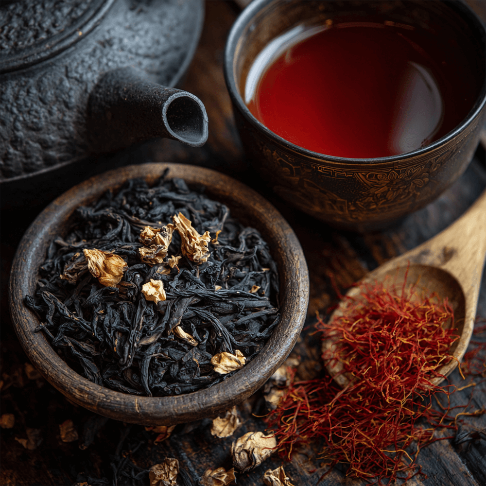 Ein rauchiger, vibrierender Auftakt: Lapsang-Souchong-Schwarztee (Headspace) trifft auf grünes Galbanum, würzigen Kardamom und trockenen Pfeffer. Im Herzen erblüht warmer, mineralischer Safran, begleitet von bitterem Mate, harzigem Weihrauch und der feinen Pudrigkeit von Iris. In der Basis entfalten sich gegerbtes Leder, fruchtiger Osmanthus und erdiges Patchouli zu einer vielschichtigen Tiefe. Das Ergebnis: ein ledrig-holziger Safran mit trockener Spannung und goldenen Glutpunkten.