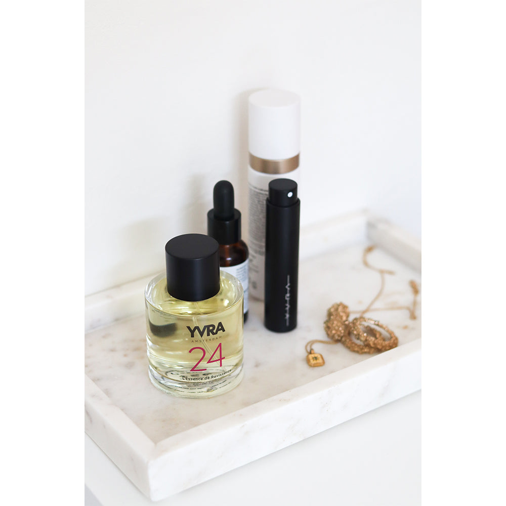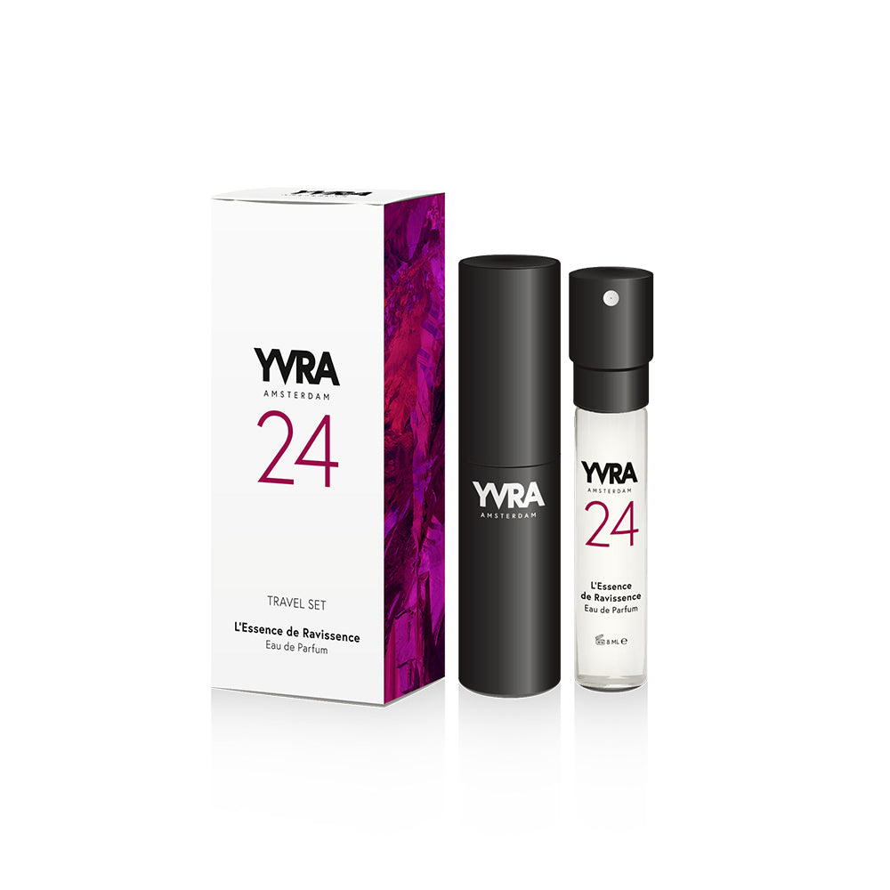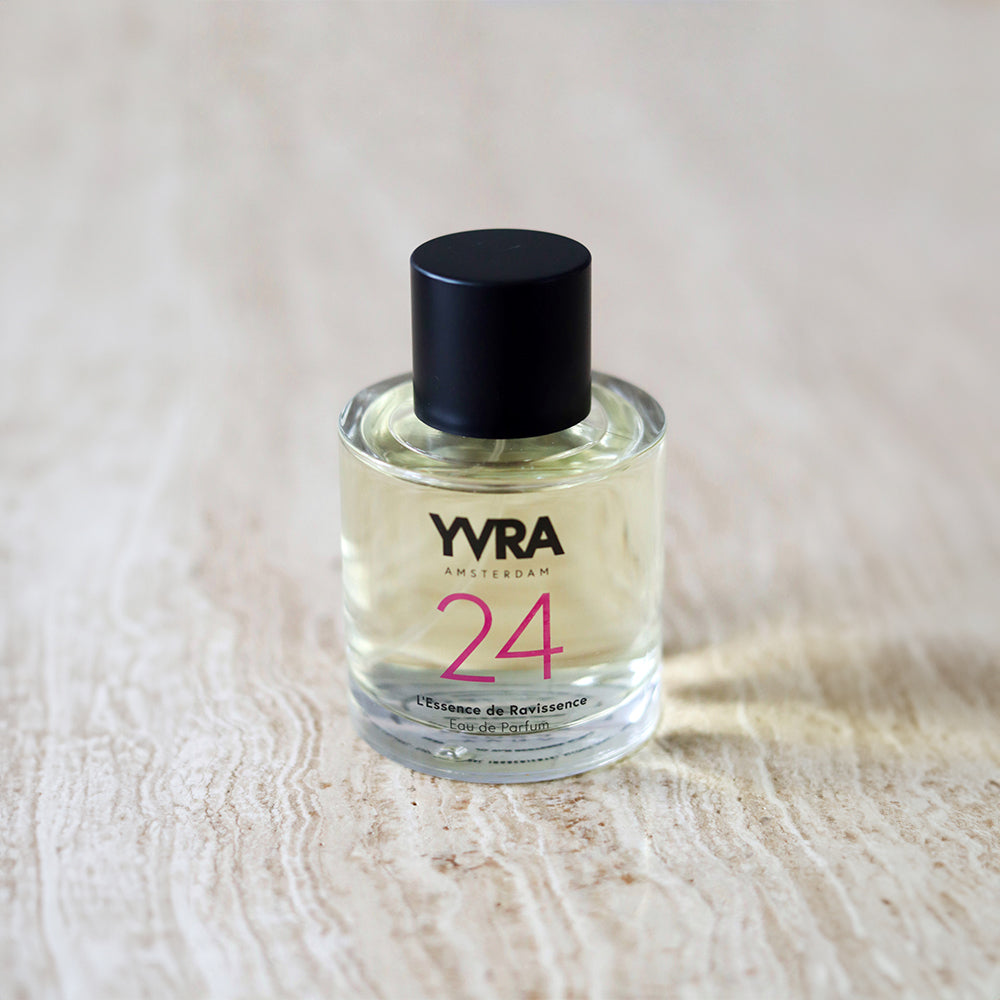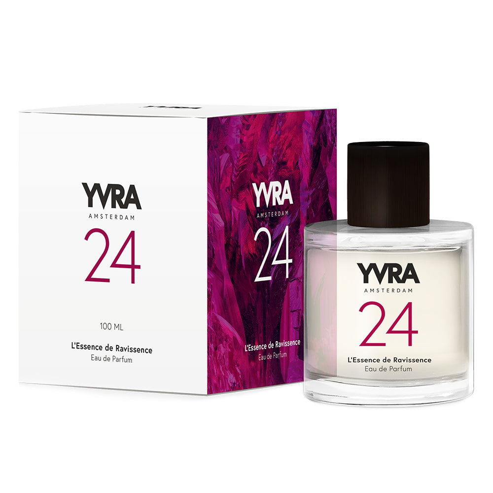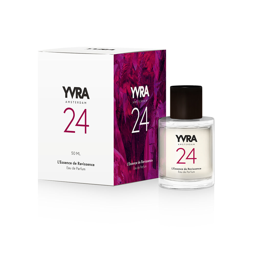 YVRA 24 eröffnet mit einer sehr präsenten und zugänglichen Kopfnote aus rosa Pfeffer, umgeben von schwarzer Johannisbeere und Safran. In der Mittel- und Basisnote kommen Papyrus, Iriswurzel, Amber und Vanille zum Einsatz, Zutaten, die den Duft in die Familie der holzig-würzigen Ambernoten einordnen.